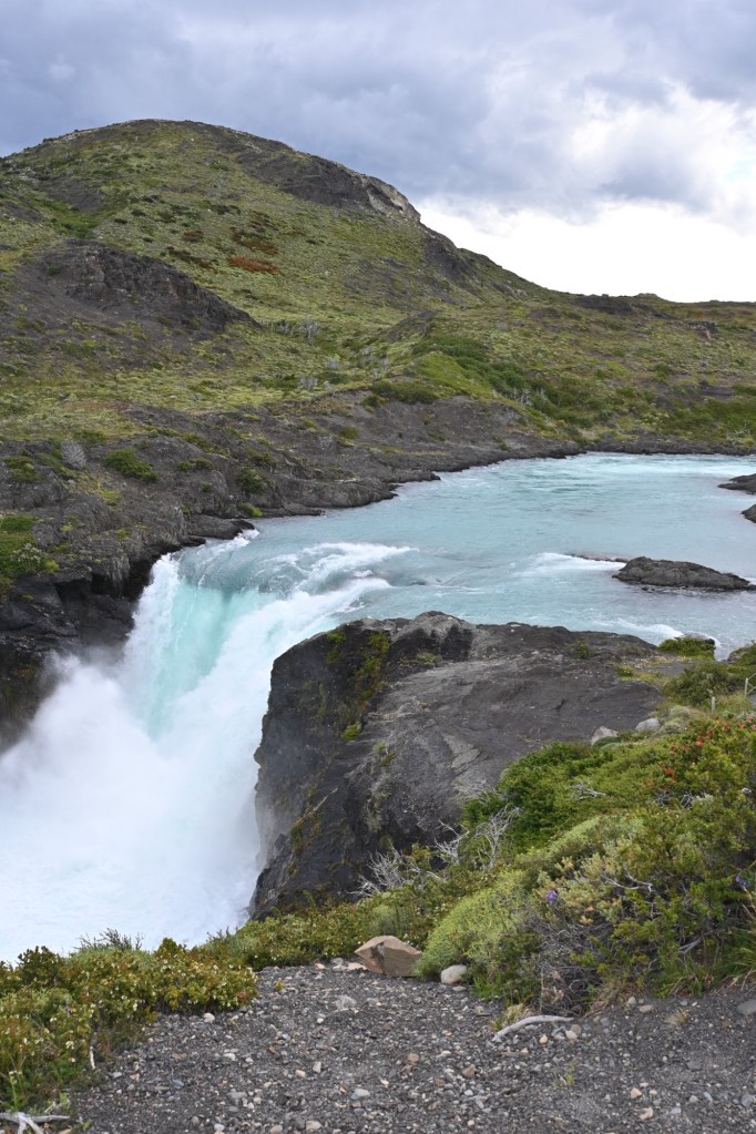 บรรยากาศ สถานที่เที่ยวในปาตาโกเนีย มุมนี้คือบริเวณน้ำตกครับ Salto Grande เมื่อจอดรถเรียบร้อยแล้ว เดินต่อมาอีกประมาณ 400 เมตรเองครับ วันที่ไปลมแรงและหนาวมาก เมื่อเดินขึ้นไปแล้วจะเจอน้ำตก